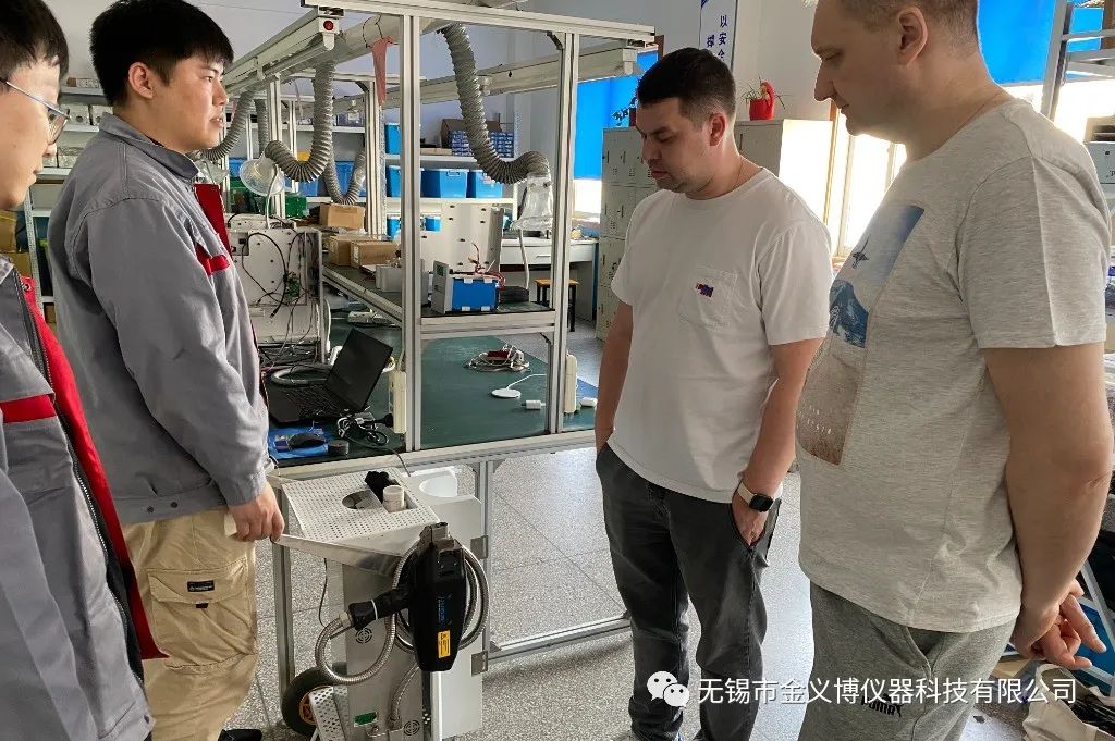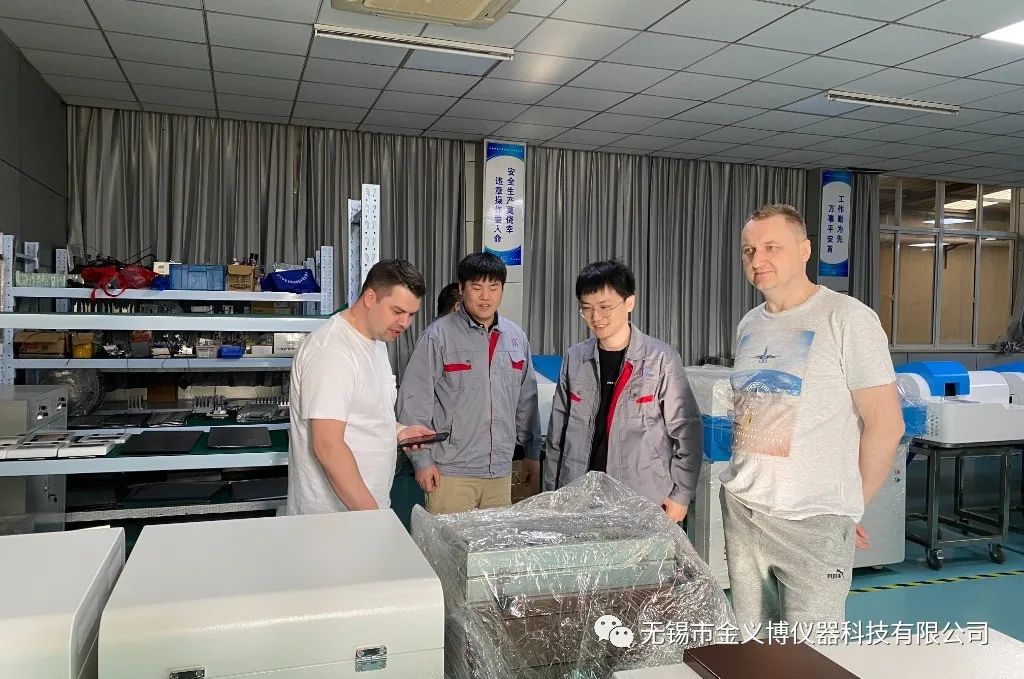 2023年4月21日,俄羅斯的外國友人蒞臨無錫市金義博儀器科技有限公司參觀學習 。由公司國際貿(mào)易部的同事帶領(lǐng)著兩位外國友人參觀金義博直讀光譜分析儀制造生產(chǎn)線,對相關(guān)產(chǎn)品、技術(shù)等進行詳細地了解和實踐。