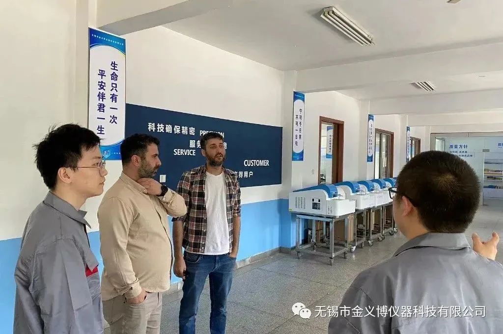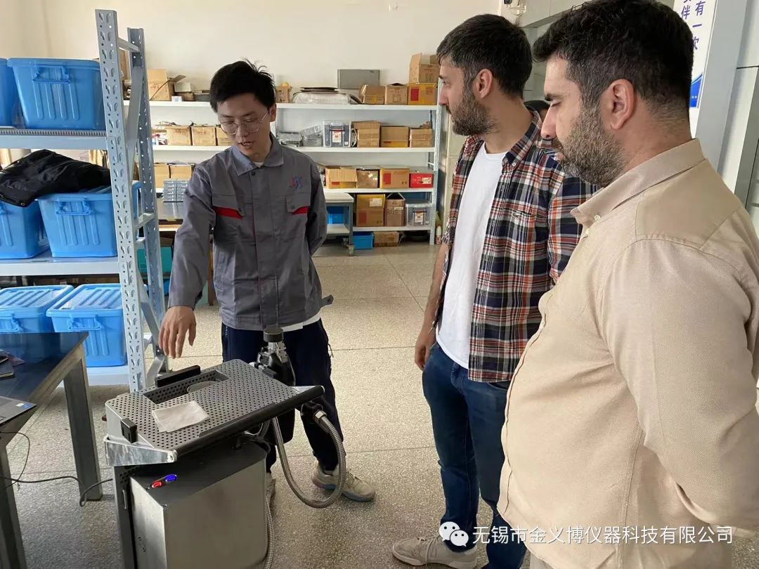 2023年4月26日,伊朗客戶蒞臨無錫市金義博儀器科技有限公司參觀指導。由公司國際貿易部銷售經理張新磊帶領著兩位外國友人參觀金義博直讀光譜分析儀制造生產線,對相關產品、技術等進行詳細地了解和實踐。